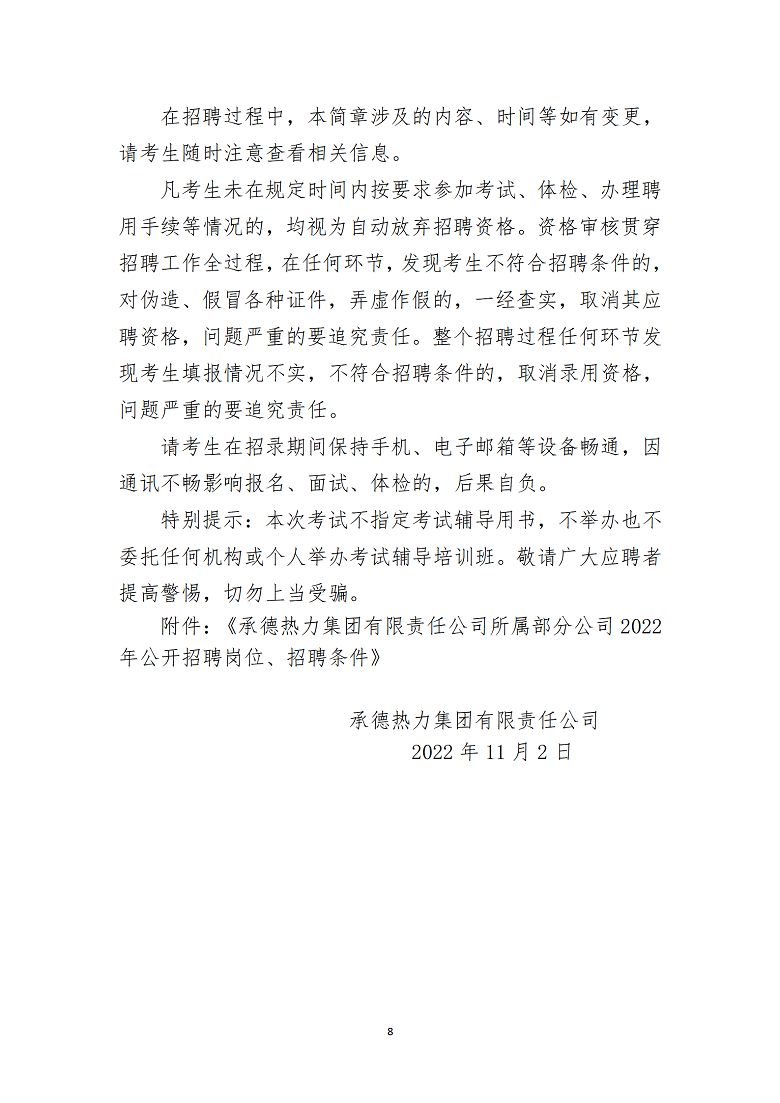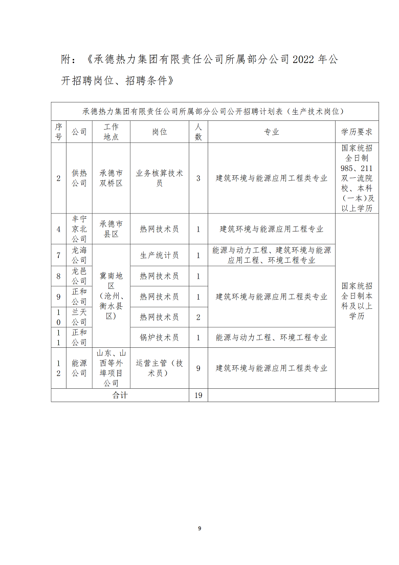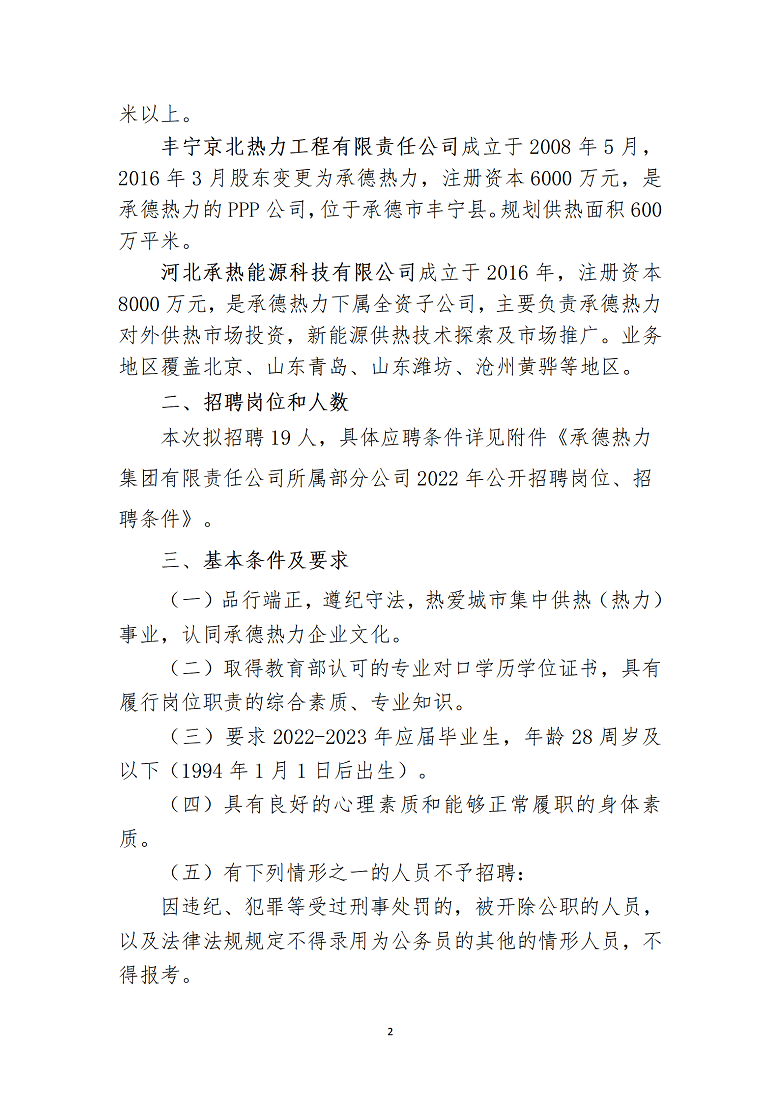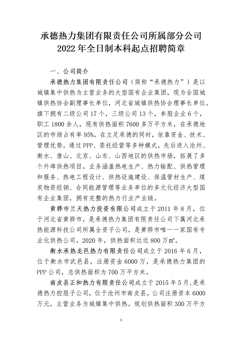 承德熱力集團(tuán)有限責(zé)任公司所屬部分公司2022年全日制本科起點(diǎn)招聘簡(jiǎn)章